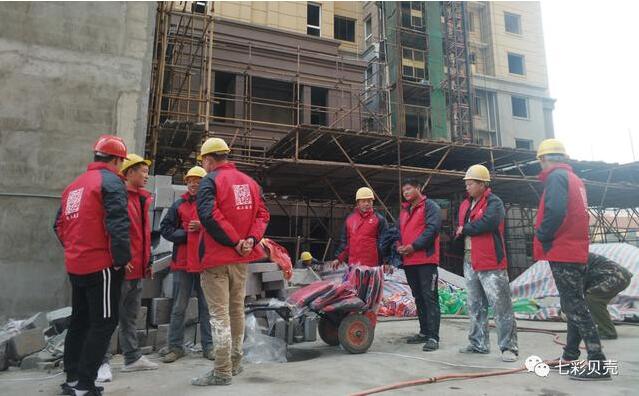 七彩貝殼董事長郭朝連帶公司部門領導到河南真石漆噴涂工地慰問